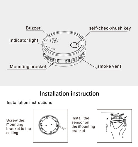 Built-in alarm siren ≥85dB @ 3m▪ 3V battery powered (1PCS 3V CR123A battery), 10 years battery life▪ Dimension: ∮98*32mm;▪ N.W: 0.2KG; G.W: 0.25KG